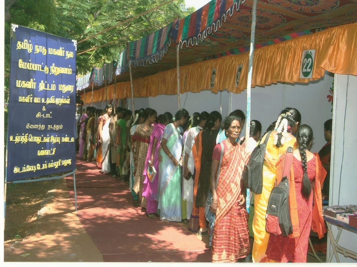 This is a short term training programme. In this training for the household women to do their practice at their homes themselves Bleaching powder, ink, Phenol & Omam water, Candle, Washing Powder, Cleaning powder, head ache ointment, computer Sambirani, liquid blue, tooth powder, Appalam, vegetable pickles, milk Goa, Snacks, all cool drink mixes, shells, Sippi, Sangu, door curtains, garlands, photo garlands, decorative materials, ornamental products, fish pickle, crab pickle, prawn pickle, cutlets manufacture training. On completion of this training for their business purpose they are selected through groups and the bank loans are arranged. Also they are trained to market their products. These programme were sponsored by Various Municipalities and Municipal corporation in Tamil Nadu.