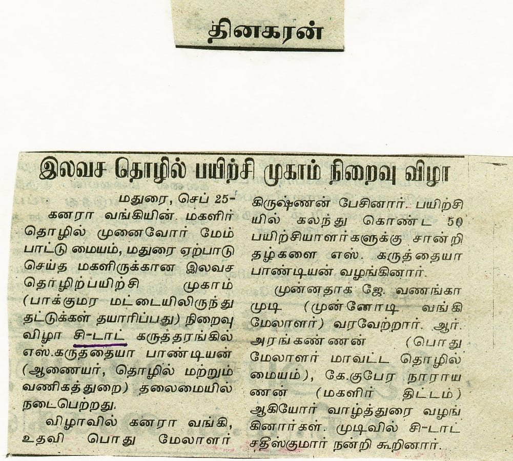 CANARA BANK - CENTRAL BOARD FOR WORKER EDUCATION - CORPORATION OF TIRUNELVELI - CORPORATION OF MADURAI - MUNICIPALITIES UNDER MADURAI REGION
