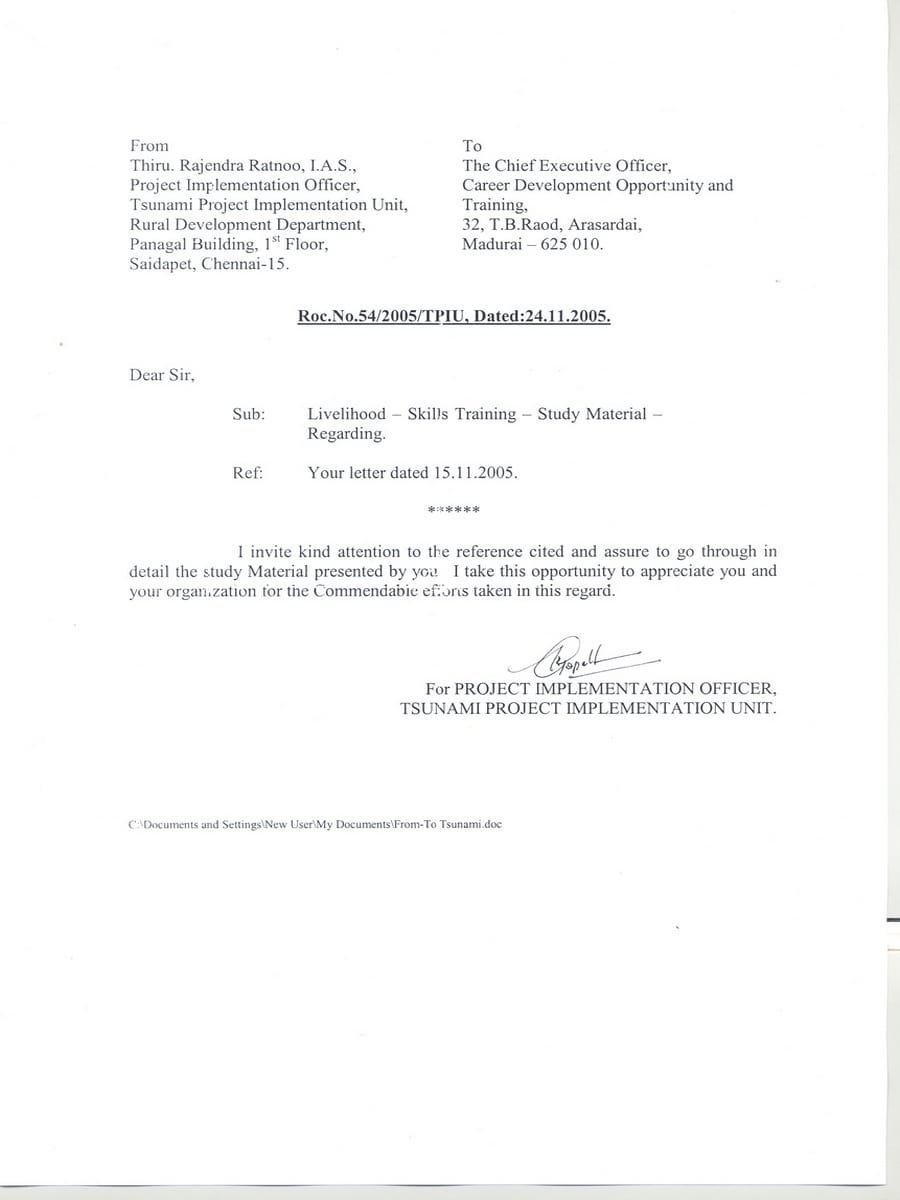 Post-Tsunami Sustainable Livelihoods Programme for the Coastal Communities of Tamil Nadu